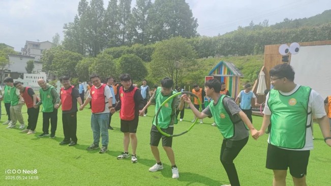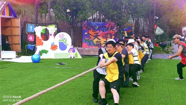 凝聚力強(qiáng)化,從“競(jìng)賽對(duì)手”到“背靠背戰(zhàn)友”的情感躍遷。徒步競(jìng)賽時(shí),總能看到先頭隊(duì)伍主動(dòng)折返協(xié)助體力不支的隊(duì)員;露營(yíng)拓展中,背夾球項(xiàng)目的“人球分離”鬧劇、拔河比賽時(shí)全員憋紅的笑臉與沙啞的吶喊,讓競(jìng)爭(zhēng)氛圍中始終流淌著“不拋棄、不放棄”的溫情。這種從“競(jìng)技對(duì)抗”到“共生共榮”的轉(zhuǎn)變,讓團(tuán)隊(duì)凝聚力有了觸手可及的溫度。