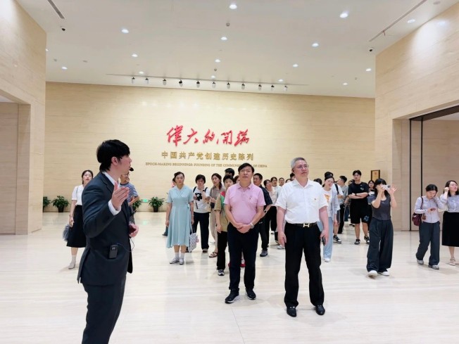 序廳兩側(cè)的浮雕墻各有深意:左側(cè)以石庫門元素標(biāo)注“上海是黨的誕生地”,右側(cè)以南湖紅船元素呼應(yīng)中共一大的南湖會議。正如毛主席所說,“中國產(chǎn)生了共產(chǎn)黨,是開天辟地的大事變”。有學(xué)員望著紅船浮雕輕聲感慨:“從石庫門到南湖船,一步之遙,卻走完了中國革命‘從0到1’的跨越。”