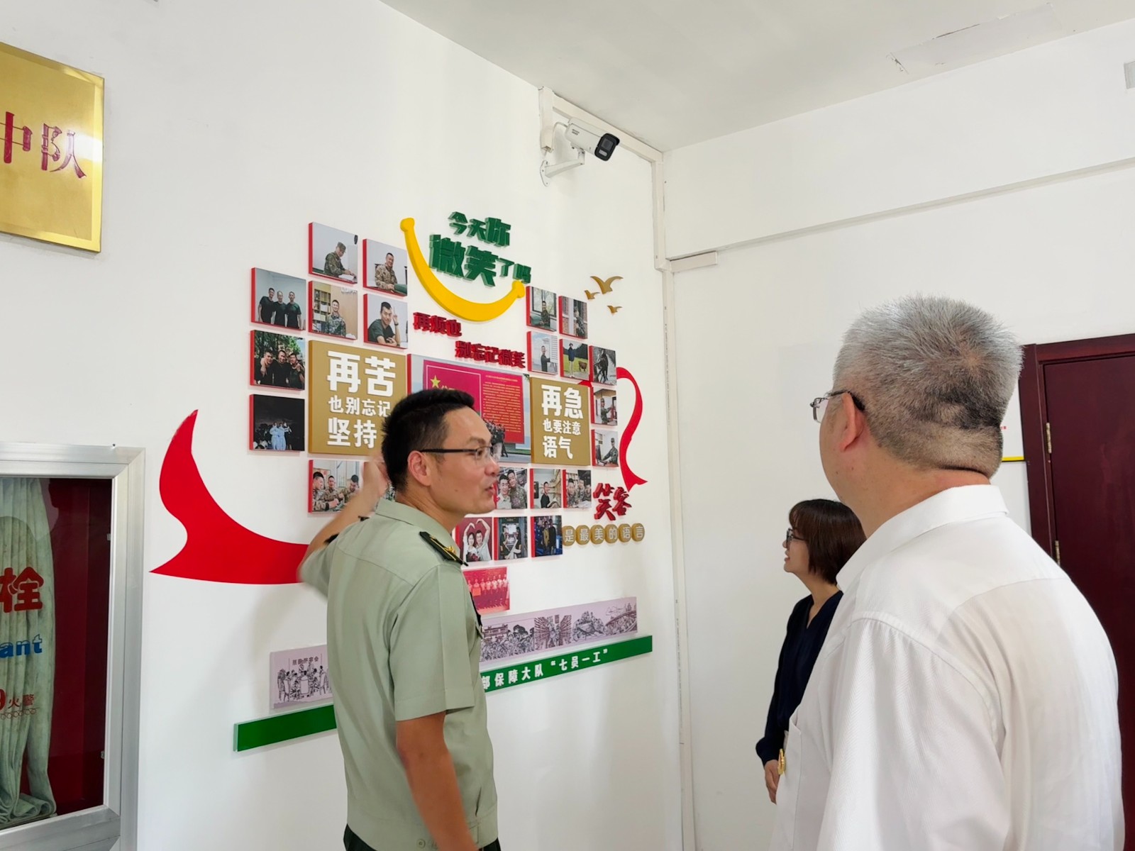 內(nèi)務(wù)室還展示了官兵生活文化墻,張貼著官兵家庭生活、退伍老兵游上海等暖心照片,以及周邊生活服務(wù)信息。這些內(nèi)容既體現(xiàn)了部隊(duì)對(duì)官兵的人文關(guān)懷,讓軍營(yíng)生活充滿溫度,也讓活動(dòng)人員感受到部隊(duì)在嚴(yán)格管理之外的溫情,進(jìn)一步拉近了軍民之間的距離。