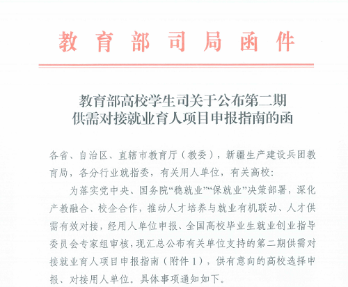 建經投資咨詢有限公司于10月18日成功入選國家教育部高等學生司第二期供需對接就業育人項目用人單位名錄。入選項目分別為:定向人才培養培訓、就業實習基地、人力資源提升三大領域,主要專業涉及工程管理、工程造價、土木工程、 建筑、人力資源等。這標志著我司在工程咨詢領域的人才培養實力、提供高校學生成長平臺、人力資源規劃與發展、校企合作的深度與廣度通過了國家教育部高校就業司的評審。